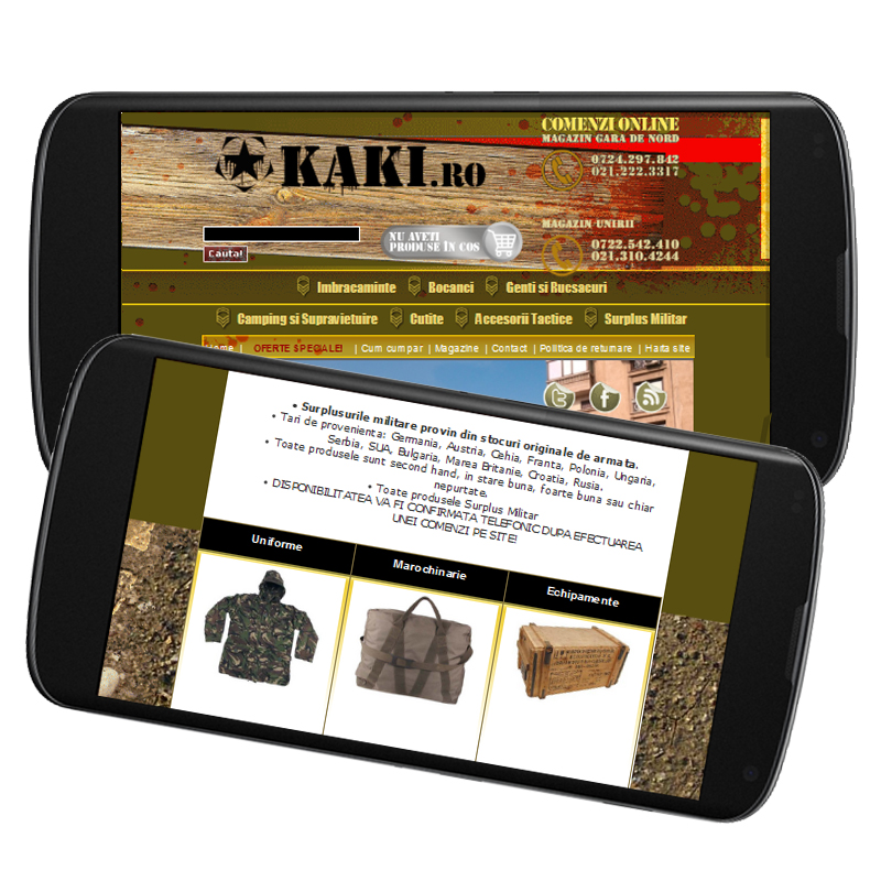 Site-ul Kaki.ro – magazin online de articole militare, sport și camping – era disponibil doar în varianta desktop, pe o platformă custom. Platforma respectivă nu a fost responsive de la bun început, iar cei de la KAKI.ro au dorit ca site-ul să poată fi accesați și de cei care intră pe telefon sau pe tabletă. Noi l-am adaptat pentru utilizarea mobilă și acum este responsive.