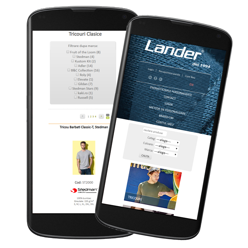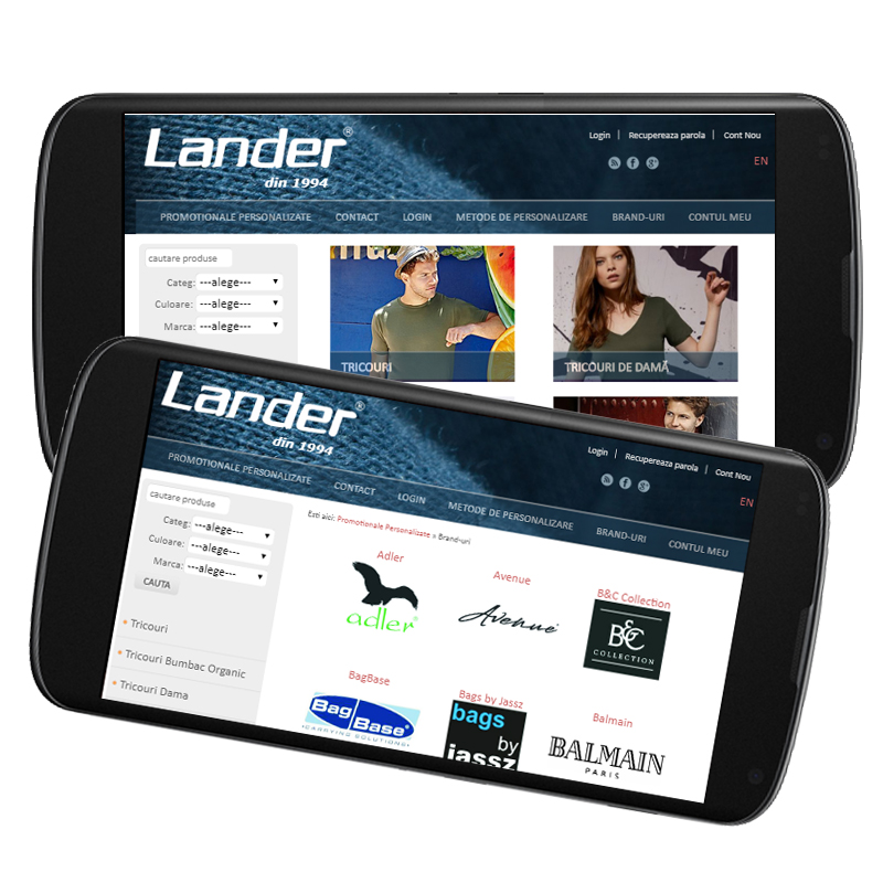 Site-ul Lander.ro a fost realizat acum mulți ani pe o platformă custom și este un magazin online de produse textile și marochinărie care pot fi personalizate sau în varianta originală. Platforma respectivă nu a fost responsive de la bun început, iar cei de la Lander.ro au dorit ca site-ul să poată fi accesați și de cei care intră pe telefon sau pe tabletă. Așadar, pentru ca site-ul să fie păstrat în continuare de către clientul nostru, am adaptat site-ul pentru ca acesta să fie responsive.